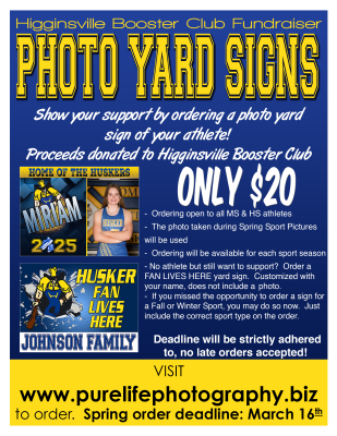 - Player photo yard signs are open to all MS and HS athletes. The photo taken during Spring Sport Pictures will be used.
